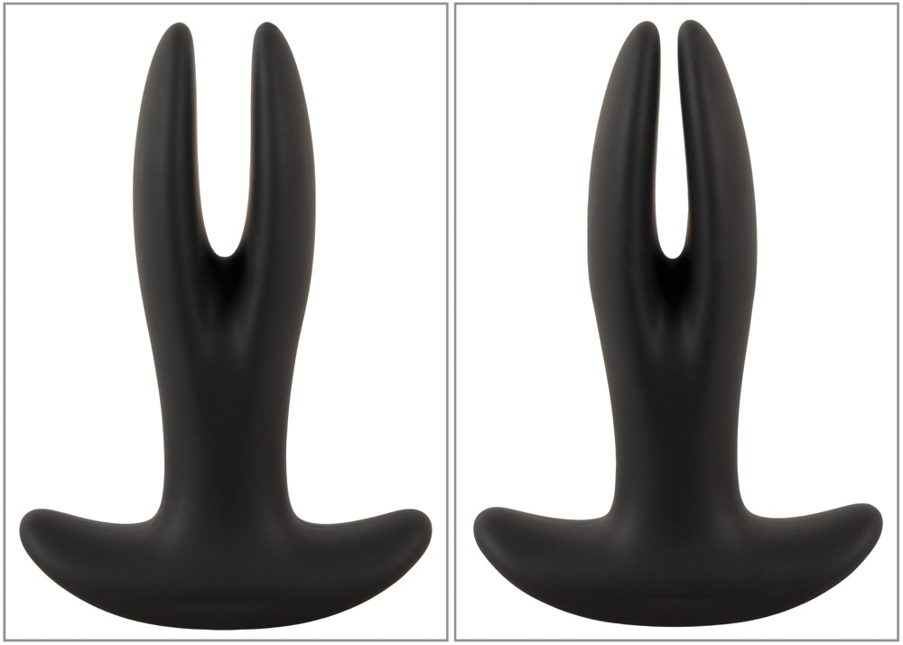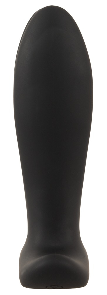 Plug vibrant avec un mode de vibrations et 8 modes de dilatation. Longueur insérable de 11.5 cm et largeur de 2.8 à 4.6 cm. En silicone noir, avec télécommande.