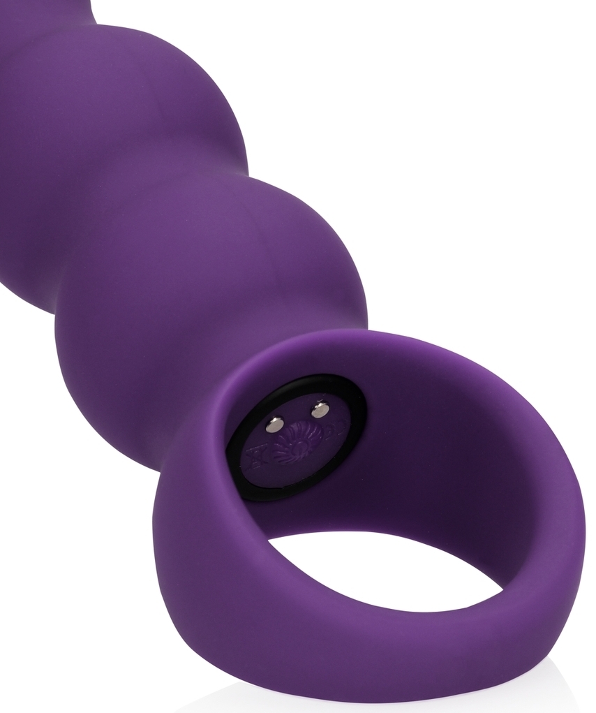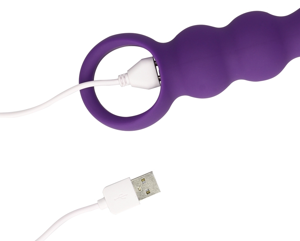 Plug vibrant avec une forme droite et des sortes de boules.Avec 10 modes de vibrations. Longueur insérable de 12 cm. Largeur maximale de 3.6 cm. Largeur minimale de 2.2 cm.Avec un anneau de 35 mm pour une meilleure prise en main. En siliconeRecharge USB