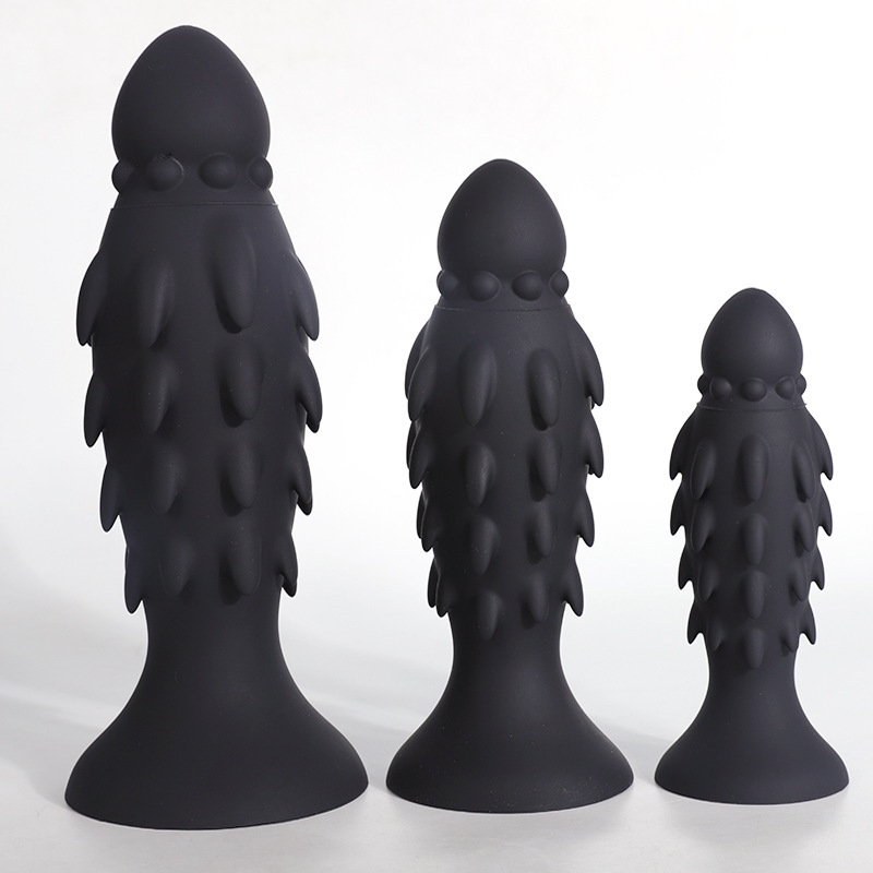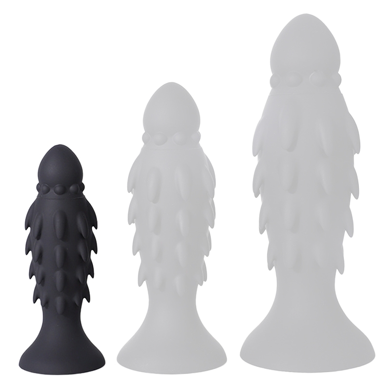 Plug avec une forme originale et une surface avec des sortes de pointes. Longueur insérable de 14 cm. Largeur maximale de 5 cm. Base ventouse. En silicone
