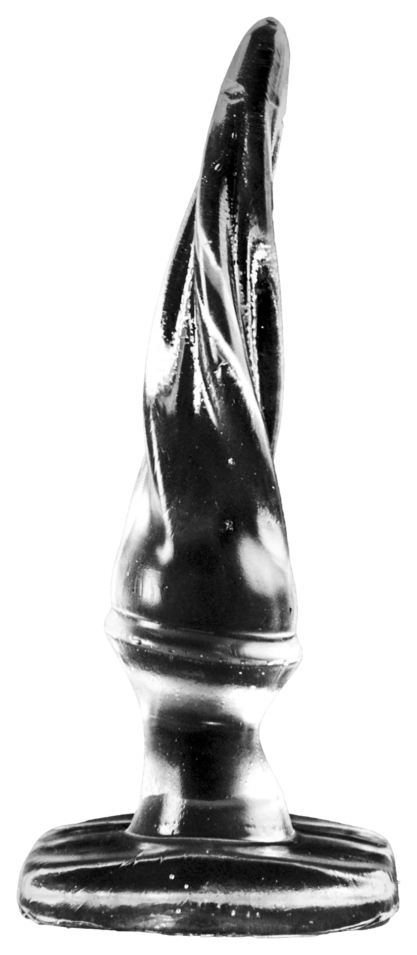 Plug transparent réalisé avec une forme en torsade. Longueur insérable de 14 cm. Largeur maximale de 3.2 cm En PVC