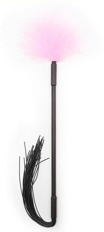 Le plumeau-martinet Tickler est ici dans sa version noire et rose.Il se compose de : les fausses plumes roses qui caressent la peau les lanières fines de 20cm fabriquées en PVC. Longueur totale de 47cm.Manche en Plastique