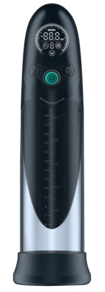 Pompe avec un cylindre gradué de 20 x 6.3 cm légèrement bleuté.Avec des modes de succion automatiques pour faire gonfler le pénis.Avec l’écran Lcd.Utilisation possible avec de l’eau. 100% Étanche.Recharge en USB.