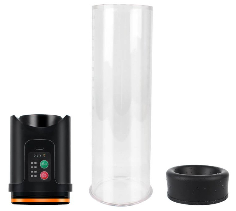 Pompe pour le pénis mesurant 19 cm de longueur et 5.5 cm de diamètre.Cylindre gradué et système de vide d’air facile.Avec deux manchons en silicone (20 et 30 mm) pour faire étanchéité à la base du sexe. Recharge en USB.