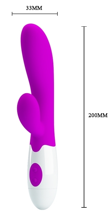 Ce vibromasseur rabbit Pretty Love Alvis mesure 20 cm. Ergonomique et flexible il est doté de : 30 modes de vibration une partie insérable recourbée de 10,5cm et d’un diamètre de 3,3cm pour stimuler agréablement le point G une seconde partie de 4,5cm pour stimuler votre clitoris Grâce à votre nouveau jouet vous connaitrez l’orgasme.Fonctionne avec 2 pilles AAA (non fournies)