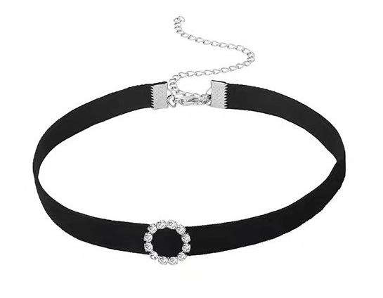 Ras de cou avec un ruban velvet noir de 9mm de largeur.Avec un bijou en forme de cercle avec des strass. Tour de cou de 33 à 40cm