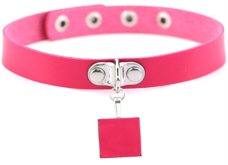 Avec un pendentif carré en métal (2.3 x 2.3cm) recouvert de simili.Largeur de 1.6cm Tour de cou de 31.5 à 37.5cm. En simili (polyuréthane)