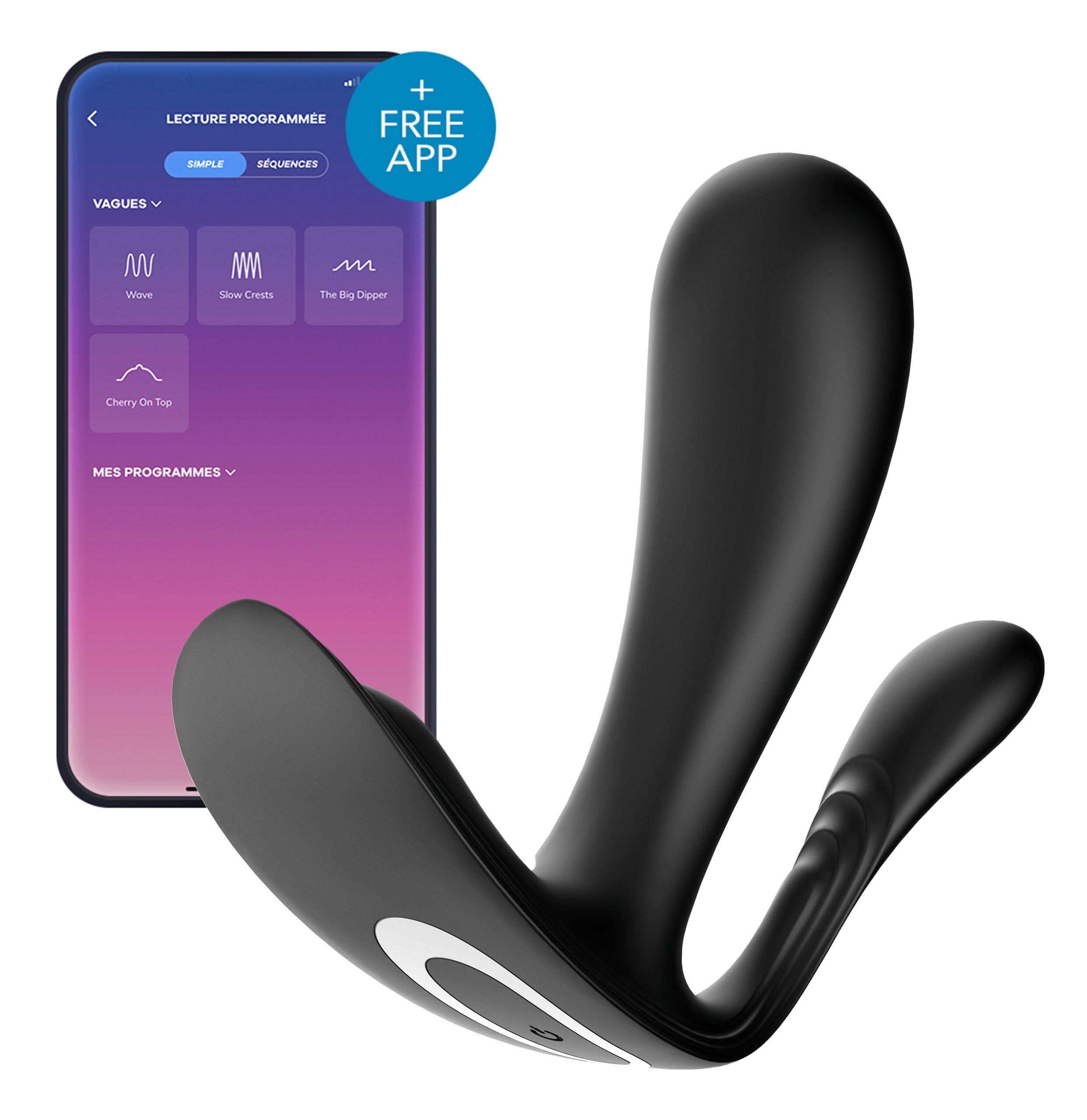 Le stimulateur connecté Top Secret+ de la marque Satisfyer est un sextoy qui permet de jouer discrètement à deux.Il est conçu avec le vibro de 9 x 3cm pour stimuler le Point G, une partie latérale fine pour la stimulation anale et la partie avant qui touche le clitoris et l’excite. Il se contrôle à distance via l’application et bluetooth. Multiples possibilités de vibrations