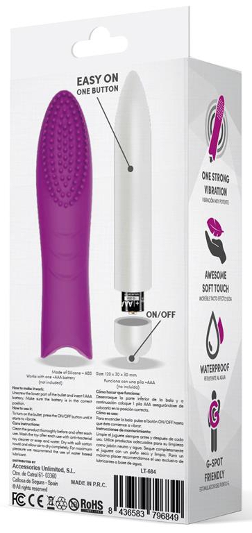 Conseils d’utilisation : Nettoyer après usage Éviter d’utiliser un lubrifiant à base de silicone Conserver dans un endroit propre, sec et à l’abri de la chaleur Éviter le contact prolongé avec un autre objet. Le fonctionnement nécessite 1 pile AAA (non fournie)