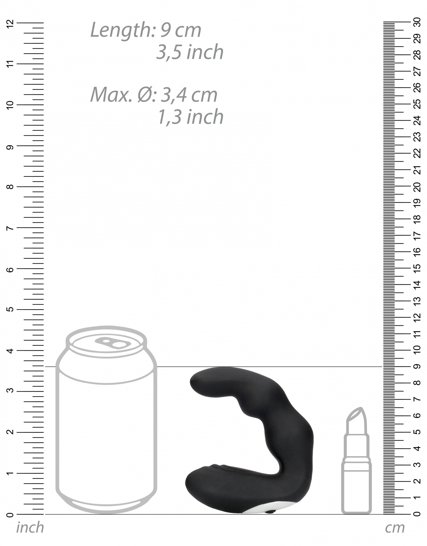 Stimulateur de prostate de 10 cm de longueur insérable et de largeur allant de 2.3 à 3.5 cm.Avec 2 moteurs et 10 modes de vibrations (avec télécommande). En silicone.Recharge USB