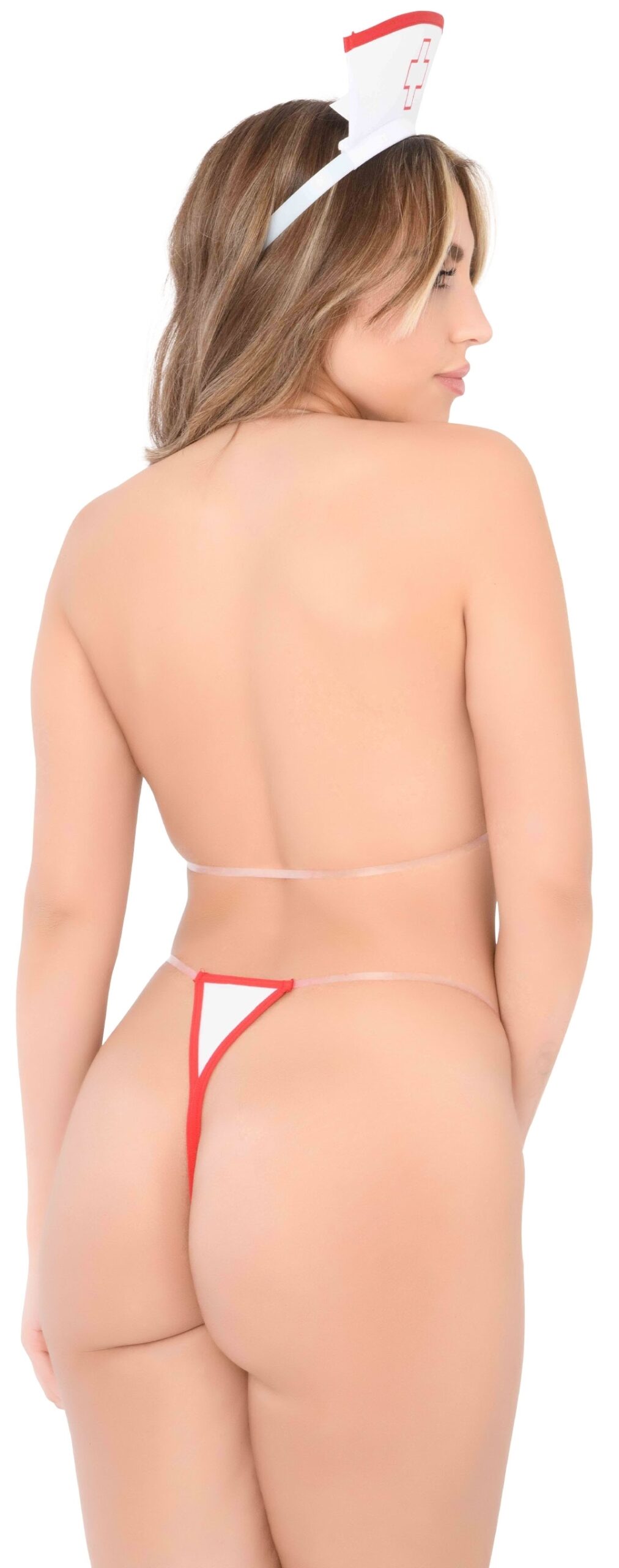 Tenue de Nurse avec 3 pièces : le soutien-gorge, le string et la coiffe. Taille unique. Composition : 90% Polyester, 10% Élasthanne