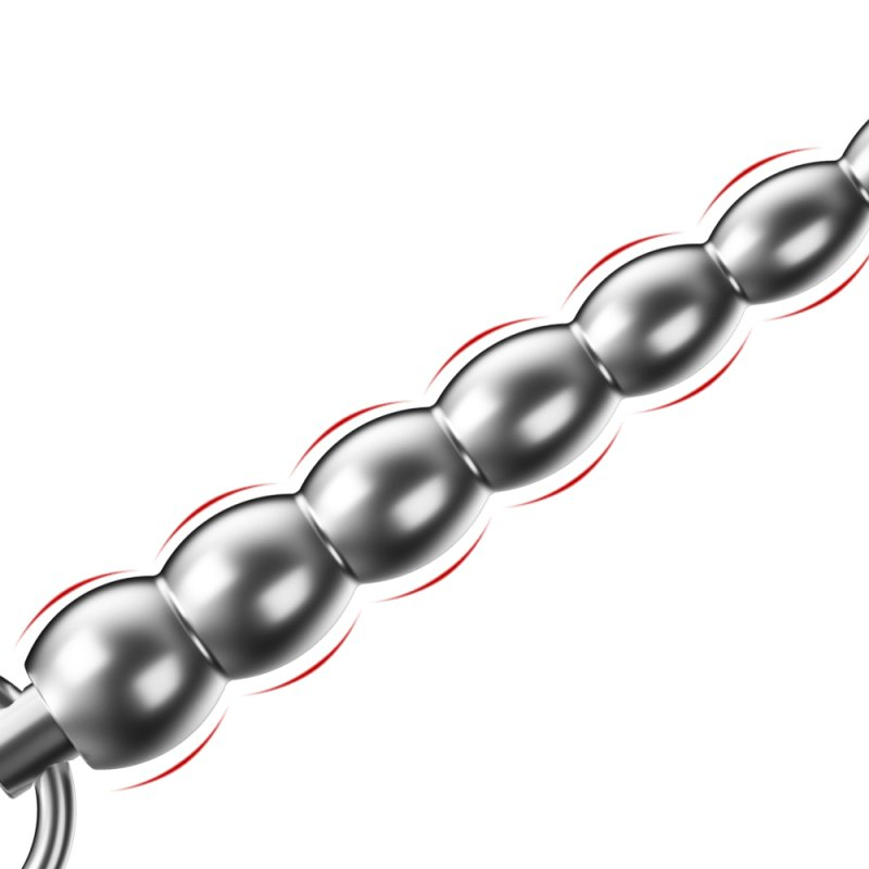 Longueur insérable de 10.5 cm.Diamètre allant de 8 à 15 mm avec des paliers.Surface lisse et anneau à l’extrémité.En métal inox.