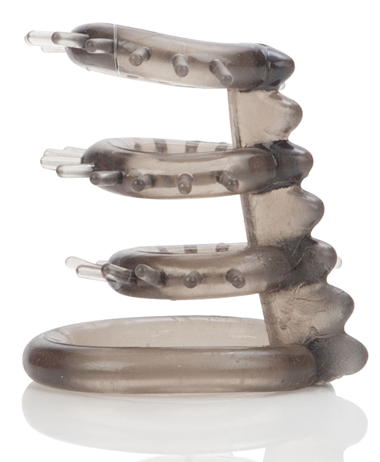 Ce sextoy est composé de 3 anneaux souples de 20mm de diamètre avec des picots souples. Ils se placent sur le pénis et apportent des sensations excitants lors de la pénétration.L’anneau principal mesure 40mm de diamètre et se place à la base du sexe. En matière souple TPR