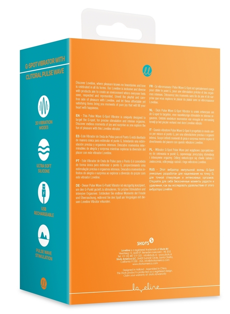 Caractéristiques : Longueur totale 12 cm Longueur insérable 12 cm Largeur maximale 3 cm Batterie Lithium – recharge USB 20 modes de vibrations 2 moteurs Étanche Temps de recharge 90 min Niveau sonore 50 dB Conseils d’utilisation : le nettoyer avant et après l’utiliser avec du lubrifiant à base d’eau uniquement le conserver à l’abri de la lumière et de la chaleur, dans un endroit sec et propre, sans contact avec d’autres objets.