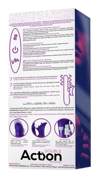 Le vibro rabbit Thrusty Wave est composé d’une longueur insérable passant de 13 à 14cm avec la fonction Poussée.La largeur est de 3.5cm. Sa surface est ondulée. Il dispose de 3 modes de poussée et d’ondulation, 7 rythmes de vibrations à la fois dans le vibro et le rabbit.