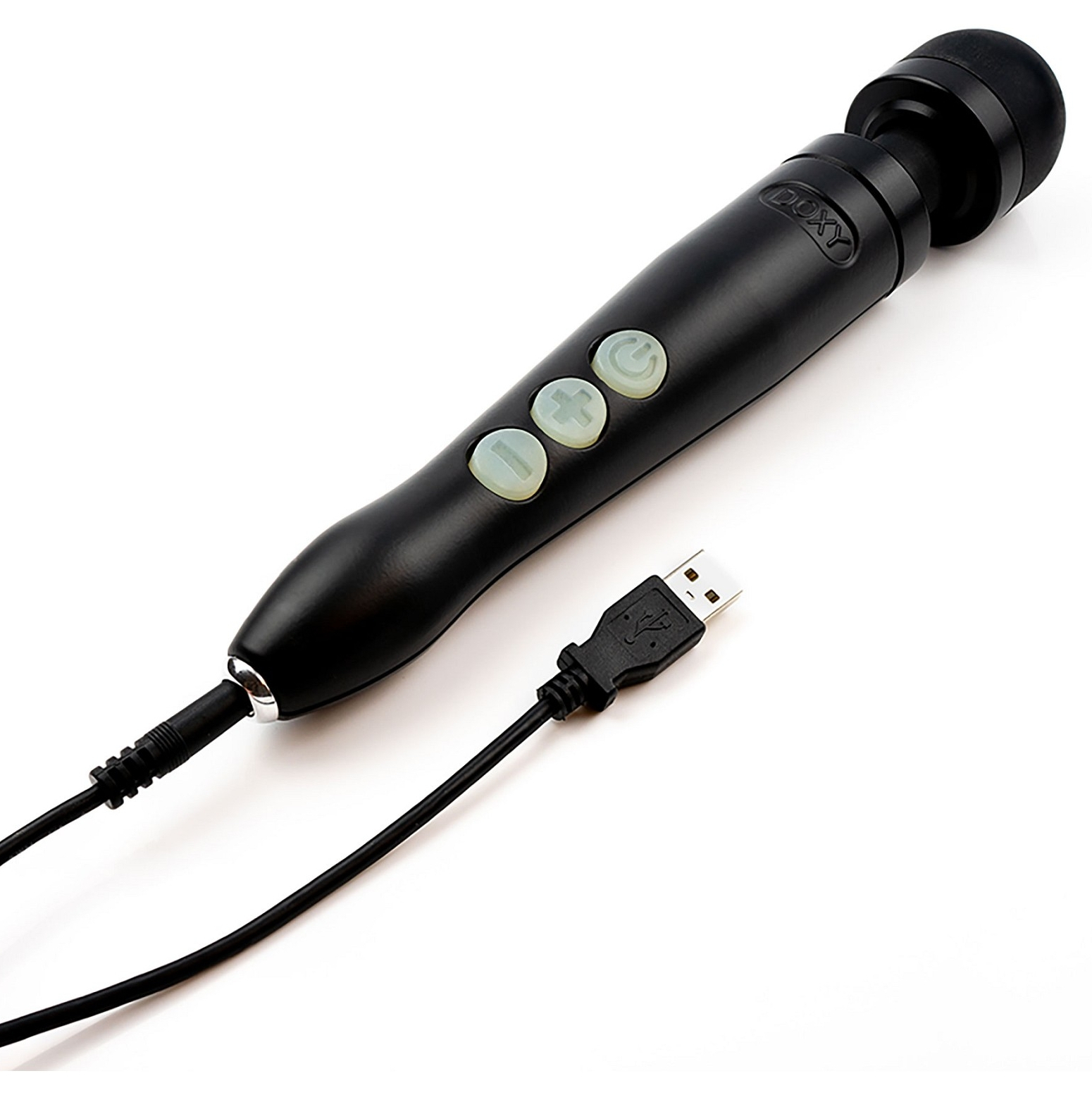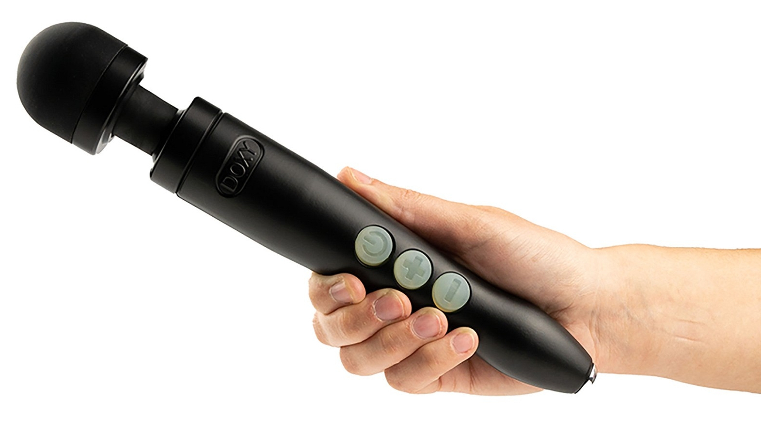 Wand Doxy rechargeable 3 boutons de contrôle 9000 RPM Cou flexible Compatible avec les accessoires Doxy Die Cast 3. Longueur totale de 28 cm. Largeur de la tête de 4.5 cm. En silicone et aluminium.