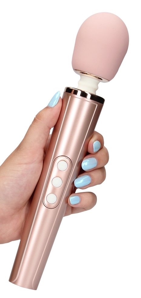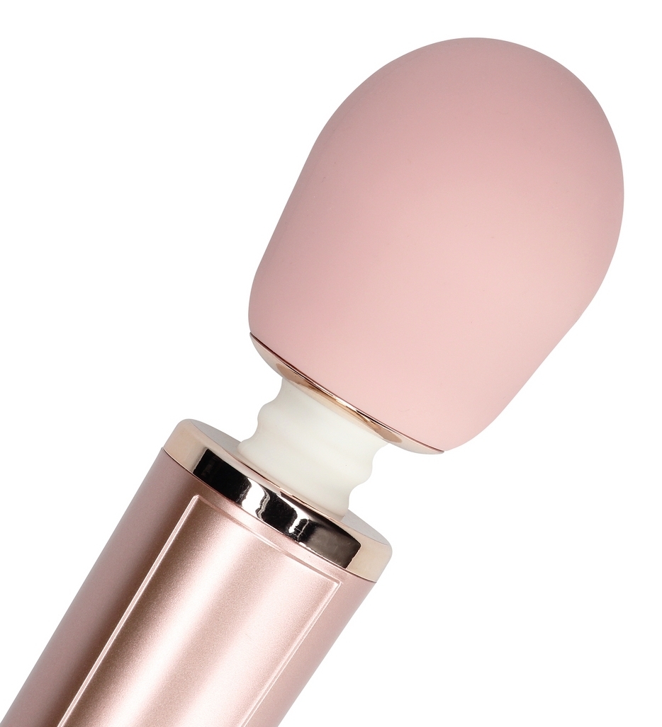 Wand avec tête de 49 mm 6 modes de vibrations Recharge USB Longueur totale de 25.5 cm Diamètre de la tête de 49 mm Tête en silicone, corps en ABS