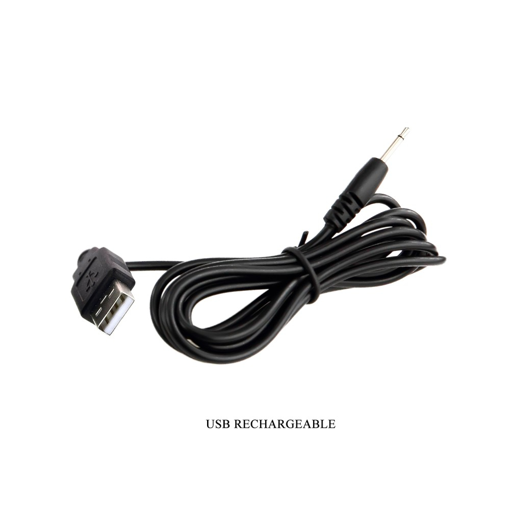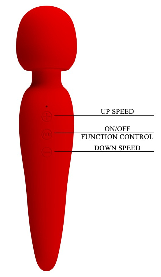 Caractéristiques : Longueur totale 21.5 cm Diamètre de la tête 50 mm 7 modes de vibrations 5 intensités Rechargeable — batterie lithium Temps de recharge 120 min Autonomie 50 min Niveau sonore 60 dB Silicone Conseils d’utilisation :  le nettoyer avant et après l’utiliser, uniquement, avec du lubrifiant à base d’eau le conserver dans un endroit sec et propre, à l’abri de la chaleur et de la lumière, sans contact avec d’autres objets.